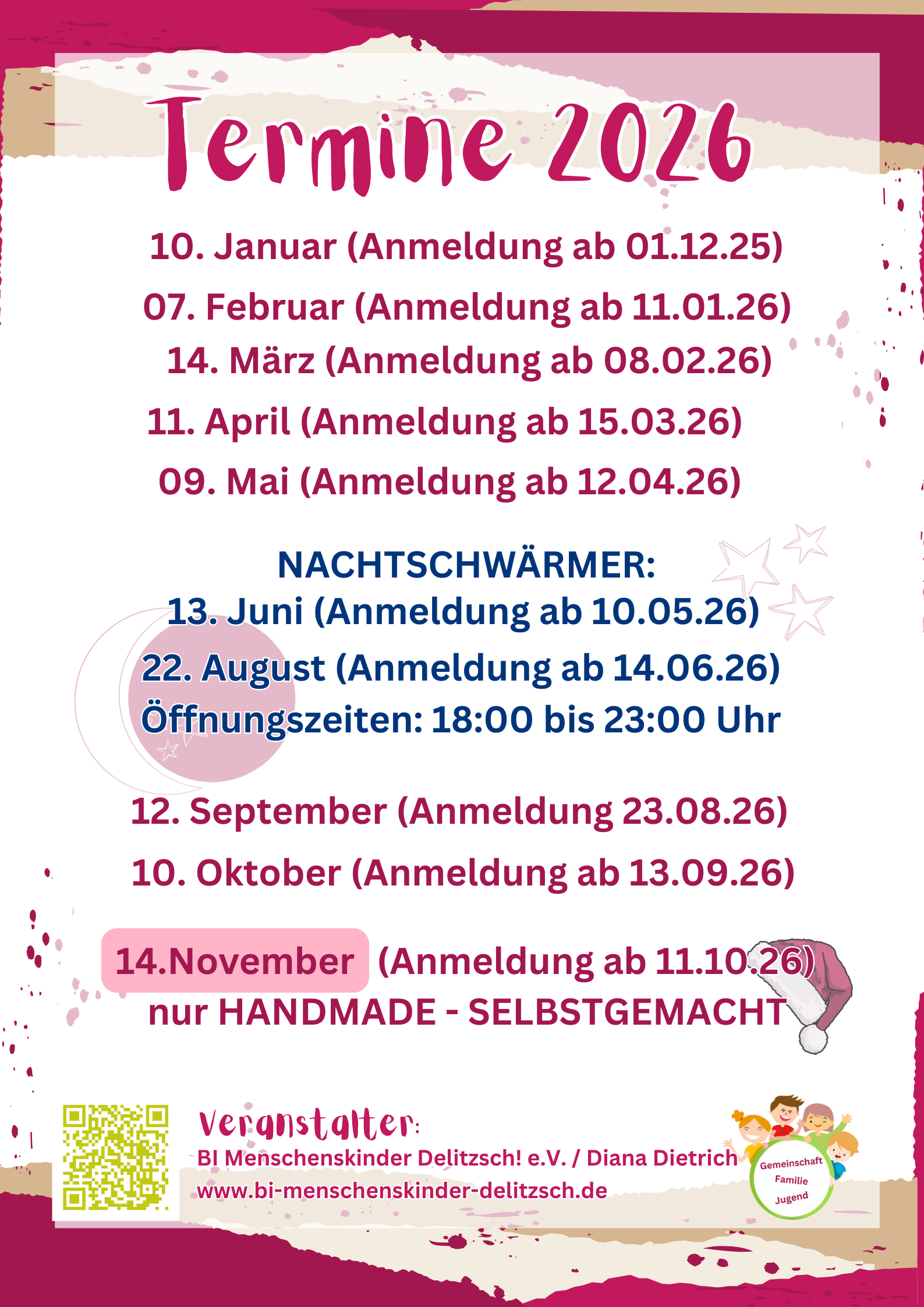 Die Zielgruppen sind demnach Familien aus Delitzsch und dem Umland, Eigenproduzenten, Hobbykünstler und Einzelpersonen, die gerne Dinge anbieten wollen.